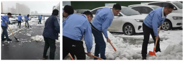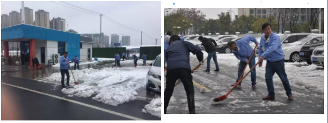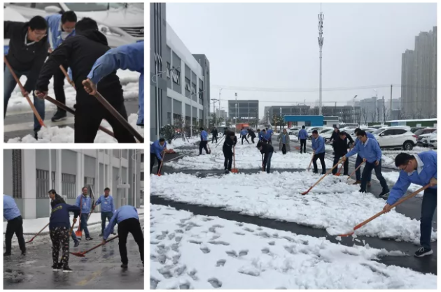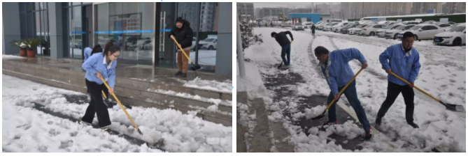 天亮了,上班路举步维艰。大家几乎是滑行到公司,雪很美,但是也会给我带来负担。我们博讯厂区的广场上铺上了厚厚的积雪,给上班的同事们带来了不便。行政人员第一时间组织人员进行铲雪,虽然当时工具不齐全,但是轮番上阵也要融化这厚厚的雪。